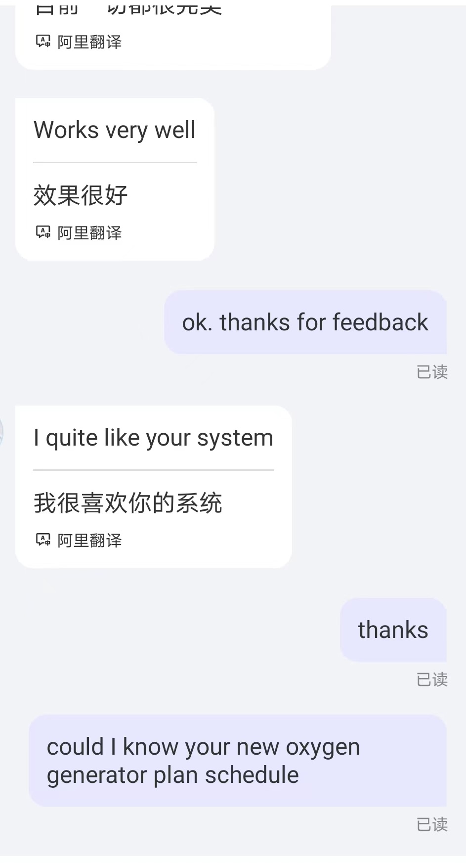 7. Grau Médico: A saída de oxigênio é equipada com filtros de precisão de nível médico e filtros de esterilização, garantindo que o oxigênio produzido esteja livre de poluentes e atenda aos padrões de nível médico.